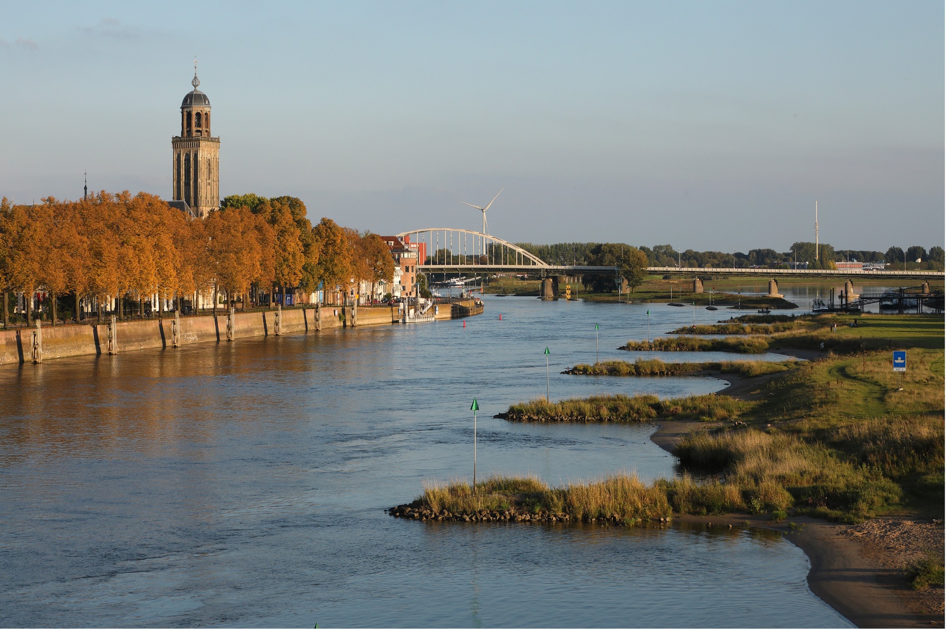 Nou ja, bij wijze van spreken, hè. We laten de hemel nog even voor wat hij is en wandelen van Olst naar Deventer vandaag, vijftien kilometer over landgoederen en langs uiterwaarden van de IJssel, misschien wel de mooiste rivier van Nederland. De IJssel is een jonkie, de rivier splitste zich ergens aan het begin van onze jaartelling af van de Rijn, pardoes vond het water een weg tussen de Veluwe en de Sallandse heuvelrug en slingerde enthousiast noordwaarts om daarna tot rust te komen in wat nu het IJsselmeer is. Jong en onstuimig, een rivier die graag buiten de oevers treedt en daar tegenwoordig ook de ruimte van krijgt, dat is de IJssel. Een rivier waar je vrolijk van wordt.