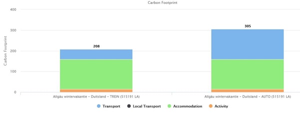 Op reis gaan betekent een onvermijdelijke CO2 voetafdruk. Zelfs deze reis naar Duitsland ontkomt daar niet aan. Hoe groot is mijn voetafdruk? In onderstaand diagram kun je zien welke voetafdruk jij achterlaat met je reis. Je ziet ook het verschil wanneer je per trein of per auto reist.