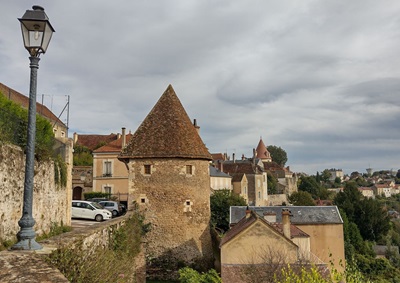 Aankomst in Avallon, een oud stadje met vestingwallen, gebouwd op roodachtige granietrotsen boven de rivier de Cousin. Het is leuk dwalen door het historisch centrum.