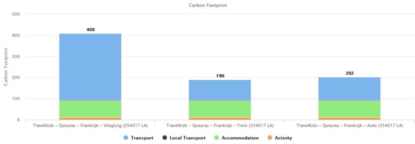 Op reis gaan betekent een onvermijdelijke CO2 voetafdruk. Zelfs deze reis naar de Queyras ontkomt daar niet aan. Hoe groot is mijn voetafdruk? In onderstaand diagram kun je zien welke voetafdruk jij achterlaat met je reis. Je ziet ook het verschil wanneer je per trein, per vliegtuig of per eigen auto reist.