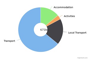 Op reis gaan betekent een onvermijdelijke CO2 voetafdruk. Ook deze reis naar IJsland ontkomt daar niet aan. Hoe groot is mijn voetafdruk? In onderstaand cirkeldiagram kun je zien welke voetafdruk jij achterlaat met je reis.