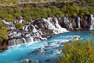 In de vruchtbare en groene vallei van de Hvitá rivier is zoveel te zien en te doen, dat je aan één dag eigenlijk niet genoeg hebt. Daarom nemen we de snelste route naar Reykholt, het centrum van de vallei, en dralen onderweg niet te lang. Het plaatsje Reykholt bestaat nu uit niet meer dan een aantal boerderijen, maar is niettemin belangrijk voor de geschiedenis van IJsland: eeuwen lang is de vallei gecultiveerd door de Vikingen en het is de geboortegrond van Snorri Sturluson, de populairste IJslandse dichter en Viking hoofdman uit de 13e eeuw en schrijver van de Eddas, het belangrijkste boek en en informatiebron over de Vikingcultuur. In de omgeving van het dorp zijn tal van warmwaterbronnen te vinden, zoals het 19e eeuwse Snorralaug, maar ook het moderne complex Krauma.  De vallei ligt in de luwte van de enorme Langjökull ijskap en kent een mild klimaat, waardoor hier mooie berkenbossen konden ontstaan met bomen die 4 meter hoog worden, de hoogste van het land. Wat verder de vallei in kun je bij Húsafell mooie wandelingen maken bovenlangs de Baerjagill, die je kunt uitbreiden met een avontuurlijk stukje door ongebaand terrein over de hoogvlakte boven de kloof (4,5 km, 200 m stijgen en dalen, 1,5 uur uit te breiden tot 7 km, 350 m stijgen en dalen, 3 uur). De kloof is diep uitgesleten in de zachte aslagen die hier door de Ok-vulkaan zijn uitgebraakt. In de vallei liggen ook de Barnafoss stroomversnelling en de Hraunfossar, waar het smeltwater onder het lavaveld vandaan komt en in de Hvitá stroomt. En dan is er ook nog helemaal achterin de vallei de Vidgelmir lavagrot,  een natuurlijke tunnel van indrukwekkende afmeting (alleen met gids te bezoeken).  Lengte autorit maximaal 225 km (260 km als je in Borgarnes overnacht.