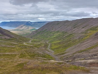 Vandaag wacht je een lange reisdag langs de vele fjorden van het noodwesten van IJsland. Er is onderweg veel te zien en het landschap en de panorama’s zijn na elke bocht even verbluffend. Een deel van de weg is nog onverhard, ofschoon met een gewone auto prima te berijden. Onderweg passeer je twee mooie watervallen: de waterval die simpelweg Foss heet (“waterval”) en de indrukwekkende Dynjandisfoss, waarlangs je een stukje omhoog kunt wandelen.  Achterin de fjord van Reykjarjördur  ligt een verlaten zwembadje, de ideale plek voor een stop! Bij het vissersplaatsje Thingeyri kun je een basalttop beklimmen: de 367m hoge Sandafell (4,5 km, 220 m stijgen en dalen, 1,5 uur). Deze beklimming gaat over een beter pad en het uitzicht is even indrukwekkend: over de Dyrafjördur en de omliggende basaltruggen die hier tot 900m uit zee oprijzen. En voor wie nog energie en tijd heeft is ook een korte omweg naar het dorpje Flateyri te overwegen, alvorens de tunnel onder het plateau van Breidadalsheidi in te duiken, die je uiteindelijk snel in Isafjördur brengt.