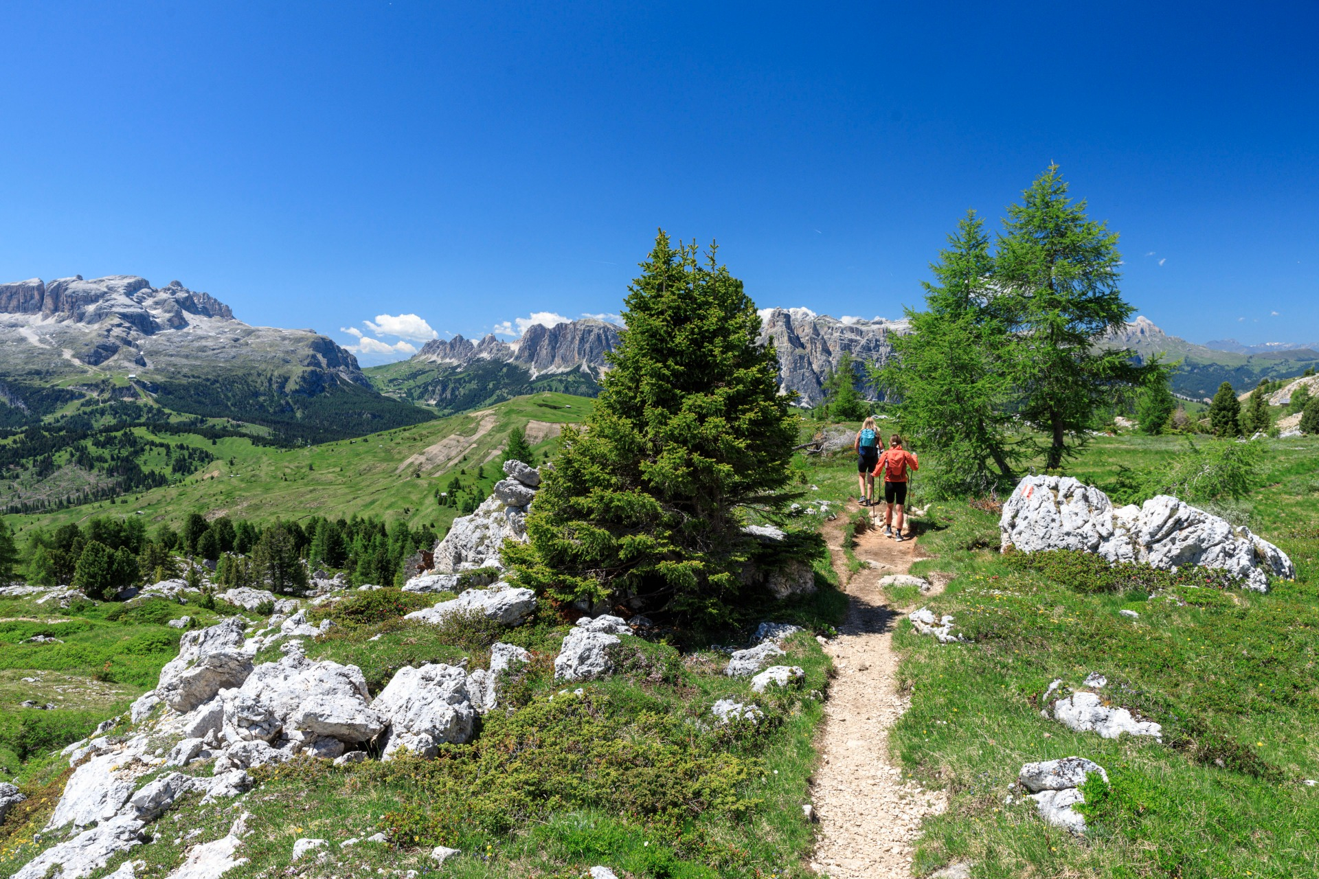 Na een korte afdaling klim je naar de Gropa-kam met prachtig uitzicht op de omgeving van Wengen en de imposante rotsen van het Natuurpark Puez – Geisler. Via de dorpjes Pederace en Pederoa loop je terug naar Wengen.