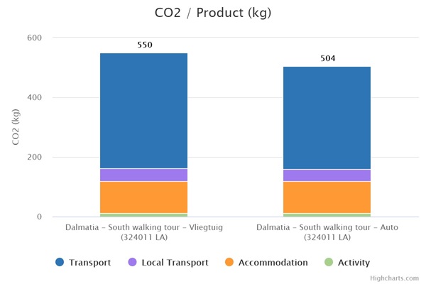 Op reis gaan betekent een onvermijdelijke CO2 voetafdruk. Ook deze reis naar Kroatië ontkomt daar niet aan. Hoe groot is mijn voetafdruk? In onderstaand diagram kun je zien welke voetafdruk jij achterlaat met je reis. Je ziet ook het verschil wanneer je per vliegtuig of per auto reist.