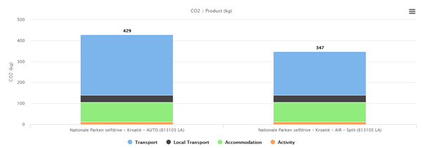 Op reis gaan betekent een onvermijdelijke CO2 voetafdruk. Ook deze reis naar Paklenica, Plitvice en Krka ontkomt daar niet aan. Hoe groot is mijn voetafdruk? In onderstaand diagram kun je zien welke voetafdruk jij achterlaat met je reis. Je ziet ook het verschil wanneer je per trein, per vliegtuig of per eigen auto reist.