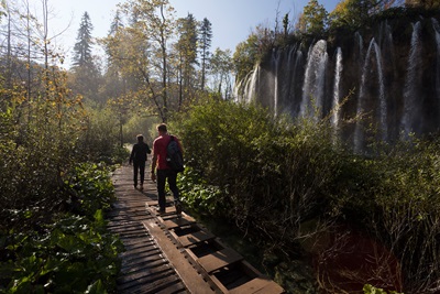 Het Nationale Park Plitvice is een van de oudste van Europa.  Het landschap doet heel anders aan dan aan de kust: de Middellandse Zee lijkt hier te midden van deze typisch centraal Europese loofbossen ver weg. Het park bestaat uit een aaneenschakeling van grotere en kleinere meertjes met water variërend van  diep blauw tot donker groen. De natuurlijke stuwmeren worden afgedamd door bemoste en begroeide travertijnrichels, sommige meer dan 50m hoog, waar het water overheen sijpelt, of stort, al naar gelang de watertoevoer en het seizoen. Je kunt hier prachtige wandelingen maken over goed onderhouden paden en plankieren.