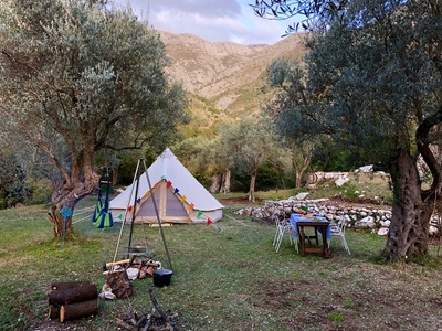 Nabij Bartula overnacht je in opgezette en ingerichte Bell tenten op kleinschalige natuurcampings. Bij de camping is een leuk restaurantje. Er staan twee of drie SNP Bell tenten samen op een rustig plekje. Er is geen elektriciteit in de tenten, wel in het restaurant.