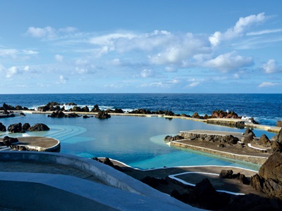- De eerste dagen verblijf je bij de noordwestpunt van Madeira in Porto Moniz. Geniet van fijne mooie kamers met balkon en uitzicht over de rotszwembaden en de oceaan..