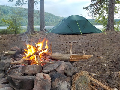 Tijdens de tocht kampeer je langs het water. Je bent vrij zelf een kampeerplek te kiezen om zo de kanotocht naar eigen wens in te delen. Je mag in Scandinavië overal wild kamperen, behalve op privé terrein of dicht bij huizen. Bij het wild kamperen zijn er uiteraard geen voorzieningen. Op een aantal plekken vind je een shelter en/of composttoilet. Heel soms is er een gewone camping, met bijbehorend comfort (ter plekke te betalen). Het zoeken van een overnachtingsplek is deel van de lol. Je moet er op tijd mee beginnen, omdat je echt niet zomaar overal kan staan. De oever kan te steil zijn, of te dicht begroeid, of er staat een huisje, of het plekje is al ingepikt door een ander kano-gezelschap.