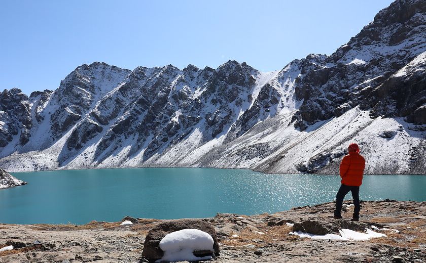 Een stuk ten oosten van het meer Issyk Kul ligt Karakol. In de negentiende eeuw gesticht als Russische militaire post, later vernoemd naar de ontdekkingsreiziger Nikolaj Przjevalski en tegenwoordig een populair startpunt voor trekkings in de omliggende bergen. De mooiste maak je tijdens deze reis, een tocht van drie dagen naar het bergmeer Ala-Kul. Zonder paarden deze keer (het pad is op een paar stukken te rotsachtig), maar er gaan wel een paar dragers mee die vooruit lopen en het bivak opzetten. Dat is fijn, want zo heb je zelf meer tijd om van de omgeving te genieten. Glinsterende rivieren. Bergpassen. Een smaragdgroen bergmeer. Neem wel warme kleding mee, want je krijgt hier soms te maken met vier seizoenen op één dag. ‘Op de tweede pas had het net gesneeuwd, bij de afdaling zakten we soms tot over onze enkels weg in de knisperend verse sneeuw.’ In het dorp Altyn Arashan eindigt de trekking in Kirgizische stijl: met een bad in de natuurlijke hotsprings.