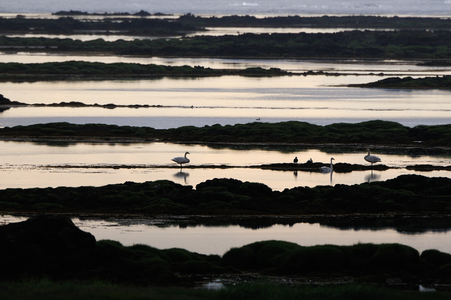 Wim legt de ornithologische zweep er direct over. Niet lullen, maar kijken. Verdorie, daar gaat onze eerste gezamenlijke borrel. Maar even later denkt niemand daar nog aan. De lege Noordzeehorizon blijkt bij nadere inspectie vol leven. Verrekijkers en tien paar ogen doen wonderen. We zien de eerste jan-van-genten, eidereenden, bruinvissen, zeekoeten en sterns. Meteen is het adrenalinelijntje gelegd dat vogelreizen zo verslavend maakt. Zelfs het meest lege landschap wordt een doos vol verrassingen. En reisleider Wim toont meteen zijn klasse. Binnen een half uur krijgt hij iedereen fanatiek aan de meeuwen. Dan ben je groot. “Ja, let op, hier voor ons, vleugeltoppen in inkt gedoopt, betekent…” “Drieteenmeeuw!”, brult de groep in koor. De ornithologische zweep blijkt dan met Bourgondische souplesse gehanteerd te worden. “Jongens, jullie leren snel, nu hebben we dat biertje echt verdiend!”
