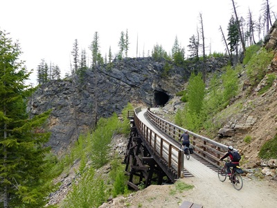 Naast de wandelingen maak je een tweedaagse fietstocht over een grotendeels onverhard doch prima pad. Stukken van het pad zitten diepe kuilen en andere stukken ligt wat los zand. Dit pad is niet toegankelijk voor gemotoriseerd verkeer. Omdat het een oude spoorlijn is verloopt het profiel zeer geleidelijk, maximaal 2% klimmen of dalen. Totaal daal je 800 meter af.