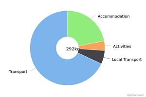 Op reis gaan betekent een onvermijdelijke CO2 voetafdruk. Ook deze reis naar Corsica ontkomt daar niet aan. Hoe groot is mijn voetafdruk? In onderstaand cirkeldiagram kun je zien welke voetafdruk jij achterlaat met je reis.