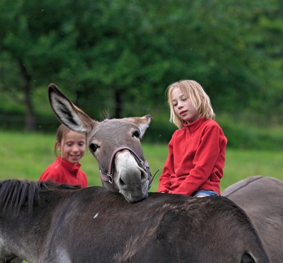 Vanwege het geaccidenteerde terrein is het niet mogelijk kinderen op de ezel mee te laten rijden. Hooguit kan dit voor even op een enkel vlakker stukje.
