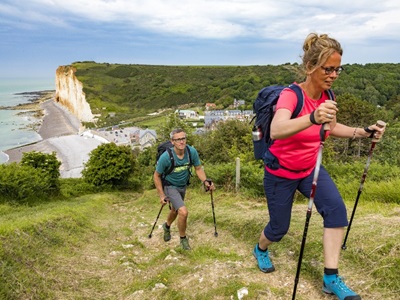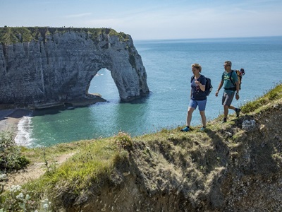 Tijdens deze wandelvakantie in Normandië kun je heerlijk uitwaaien langs de spectaculaire kliffen en kiezelstranden van de Côte d’Albâtre: het abrupte einde van het zacht glooiende mergelland van het ’Pays de Caux’. Wandelen van Fécamp naar Etretat hoog boven het woelige zeewater van het Kanaal. Geniet van natuurlijke beeldhouwwerken - zoals La Manneporte en Falaise d’Avalin - ooit de inspiratiebron voor Monet. Lekkere visrestaurantjes in de levendig haventjes.