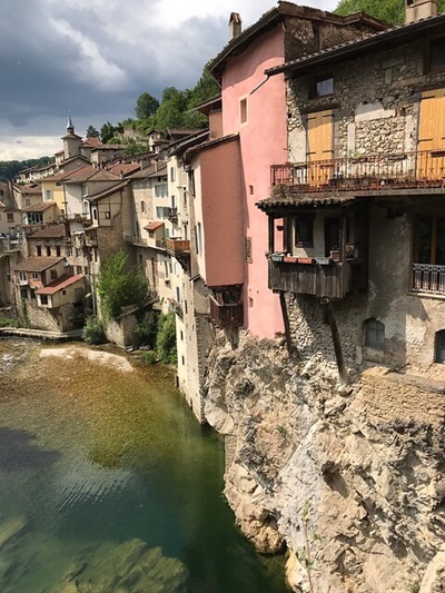 In Pont-en-Royans ligt het hotel erg mooi boven de rivier de Bourne