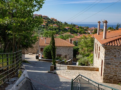Op Sithonia overnacht je in een traditioneel bergdorp, Parthenonas, in een charmant Xenonas (guesthouse). Tussen de natuurstenen huizen is veel groen. Met de auto ben je snel in het badplaatsje Neos Marmaras.