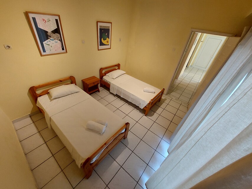 De ruime appartementen Kidonakia liggen op ca. 100 m van het dorpsplein. Er is een aparte woonkamer/ keuken en een ruim afsluitbaar terras. Elk appartement heeft minimaal 2 slaapkamers en soms nog ruimte voor een extra bed of een sofabed op entresol of in de living.