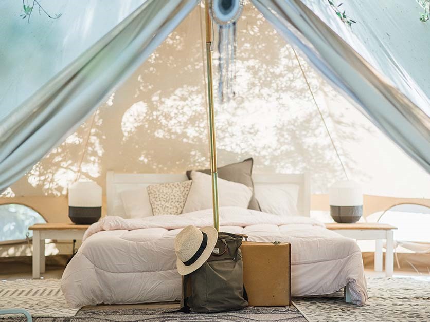 - Bell tent. Pyramidetent voor 2 personen met houten vloer en tweepersoonsbed of 2 aparte bedden. Als gezin kun je ook twee naast elkaar gelegen Bell-tenten reserveren. Deze tenten zijn in april en oktober niet beschikbaar.
