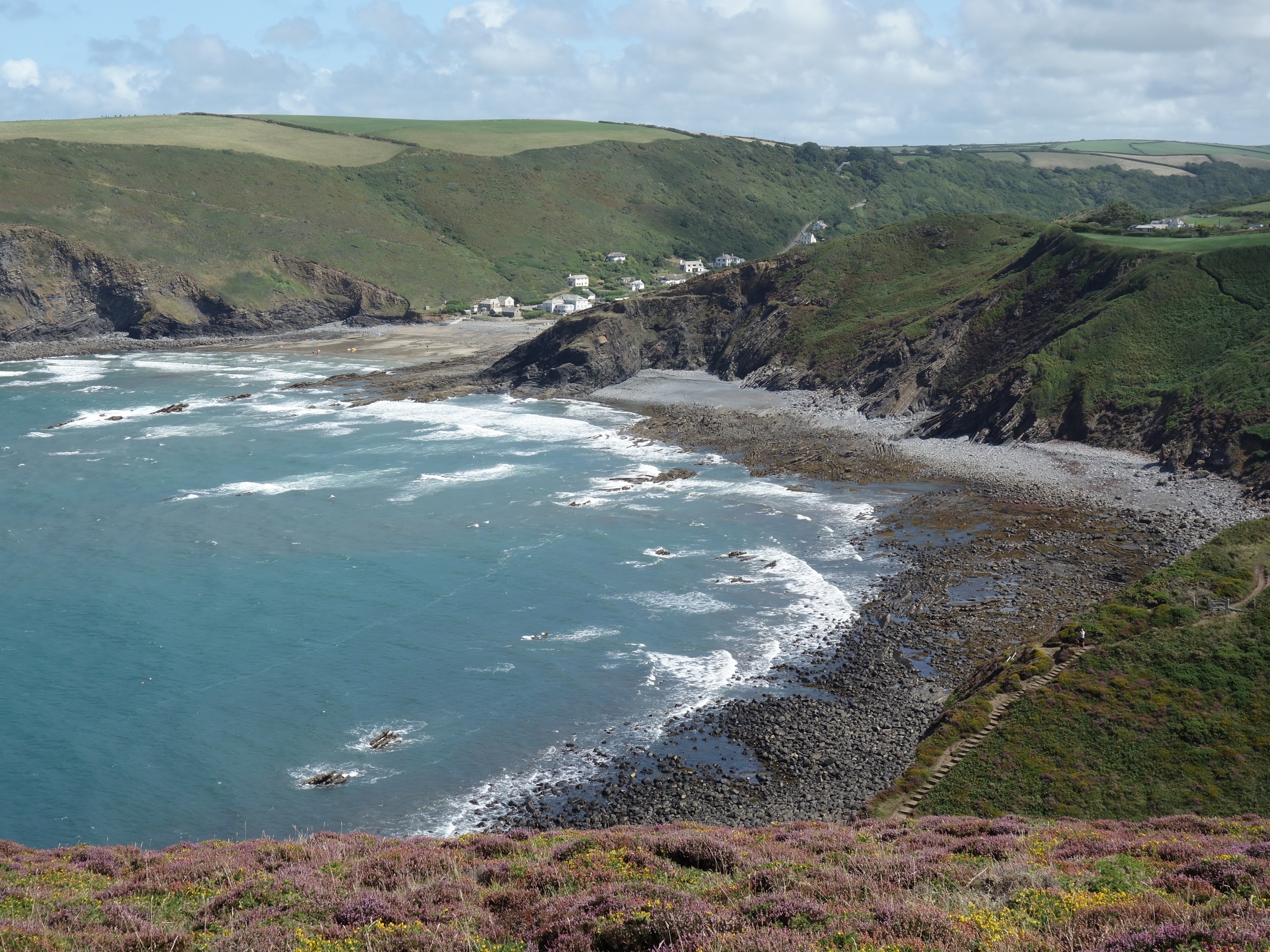 Per openbaar vervoer laten we ons in vijftien minuten naar het landinwaarts gelegen Wainhouse Corner brengen (3 km rijden). Van daar maken we een wandeling door het cultuurland naar Crackington Haven en vervolgens over het prachtige kustpad terug naar Boscastle. Langs het kustpad vinden we zoutplanten zoals zeevenkel, Engels gras en blaassilene, en typische kustheiden: bloedrode dophei en gaspeldoorn. Lengte 16,5 km, 390 m stijgen en 520 m dalen, 6 uur.