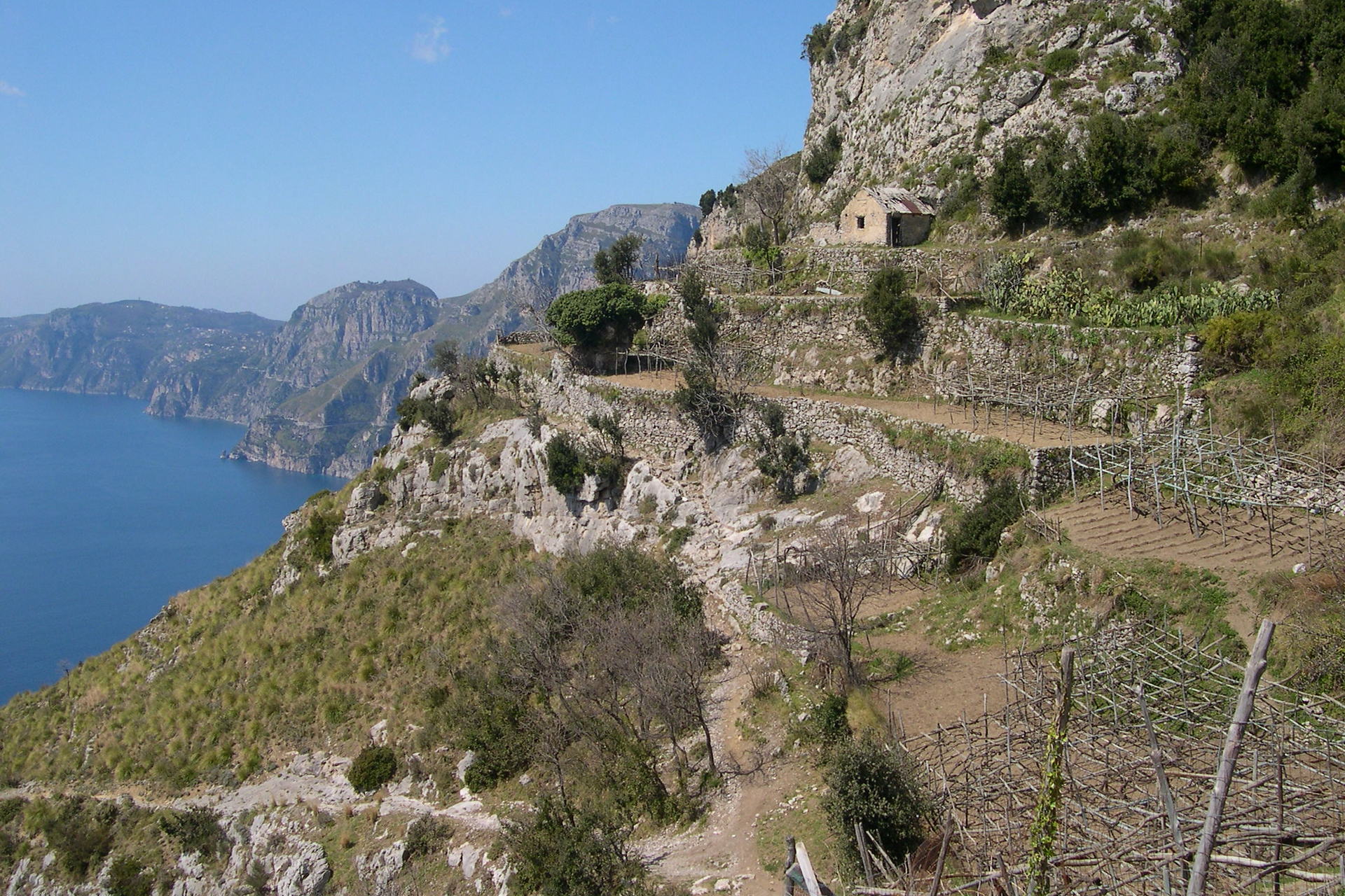 Ook vandaag leg je eerst een stuk met de bus af en stap je uit in Conca dei Marini, bij het - uit de 10e eeuw daterende - klooster van Santa Rosa, dat hoog op een rots boven de baai van Conca uit torent. Via een schitterende panoramische route langs kleine dorpjes, tuinen en wijngaarden bereik je de 'fjord' van Furore, een nauwe kloof met meer dan 200 meter hoge steile rotswanden. Je loopt de kloof door en komt uit bij het karakteristieke vissersgehucht aan de nauwe monding. Van hieruit klim je weer omhoog naar de kerk van Sant'Elia, met een beroemd fresco. Dan via de 'Via dell'Amore' door de groene Praia-vallei, naar Praiano. Afdalend door de tuinen en karakteristieke straatjes kom je bij je hotel, hoog boven een klein baaitje gelegen. Wandeling: 8,5 km, 430 m stijgen en 560 m dalen, 4,5 uur.