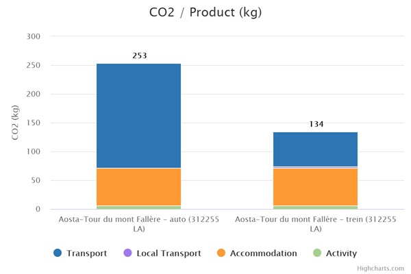 Op reis gaan betekent een onvermijdelijke CO2 voetafdruk. Zelfs deze reis naar Italië ontkomt daar niet aan. Hoe groot is mijn voetafdruk? In onderstaand diagram kun je zien welke voetafdruk jij achterlaat met je reis. Je ziet ook het verschil wanneer je per trein of per auto reist.