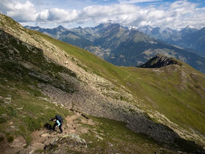 Bereid je voor op één van de mooiste panoramawandelingen die je ooit gemaakt hebt. Je begint met een pittige klim, die al snel beloond wordt door fraai uitzicht. Voor je het weet zie je de top van de Mont Blanc en de Matterhorn tegelijk aan de horizon. En dan moet de Pointe de Chaligne van 2608 m en zijn 360 graden uitzicht nog komen. Na een afdaling langs een almboerderij klim je naar Lac Fallère. Neem bij mooi weer een verkwikkende duik op 2415 m hoogte, of houd anders een siësta in het gras. Het is nog een uurtje over een mooi uitzichtspad naar de verrassende overnachtingsplek, op 2385 m, hoog boven het Val d'Aosta.