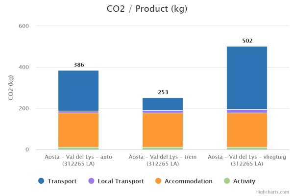 Op reis gaan betekent een onvermijdelijke CO2 voetafdruk. Ook deze reis naar Italië ontkomt daar niet aan. Hoe groot is mijn voetafdruk? In onderstaand diagram kun je zien welke voetafdruk jij achterlaat met je reis. Je ziet ook het verschil wanneer je per trein, per vliegtuig of per eigen auto reist.