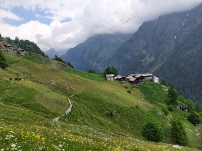 Na een klim tot de Colle Lazouney - een pas op een kleine 2400m hoogte - wacht een lange afdaling door de Vallone del Loo. De typische stenen huizen in de vallei worden gebruikt als onderkomen voor vee in de zomer. Halverwege dit prachtige, ongerepte dal word je gastvrij ontvangen in een agriturismo voor een smakelijke boerenlunch. Door het stille, vredige dal daal je helemaal af naar de vallei van Gressoney. Je volgt een tijdje de rivier Lys met uitzichten op de granietrotsen en gletsjer van de Monte Rosa.