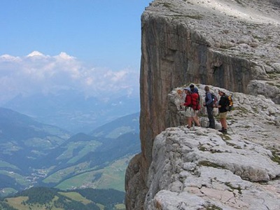 Je kunt ook kiezen voor de minstens even mooie wandeling naar de Ju dla Crusc (2612 m) met mogelijk vervolg naar L’Ciaval/Kreuzkofel van 2907 m. Hier sta je boven aan een immense, loodrechte rotswand die de rand van het Fanes-plateau vormt, en kijkt uit over de hele Dolomieten en het Val Badia op 1300 m, in de diepte.