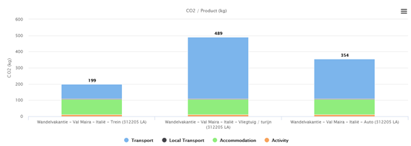 Op reis gaan betekent een onvermijdelijke CO2 voetafdruk. Ook deze reis naar Piemonte ontkomt daar niet aan. Hoe groot is mijn voetafdruk? In onderstaand diagram kun je zien welke voetafdruk jij achterlaat met je reis. Je ziet ook het verschil wanneer je per trein, per vliegtuig of per eigen auto reist.
