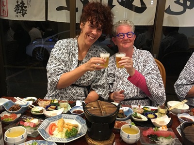 In Koyasan verblijven we twee nachten op basis van half-pension in een charmant boeddhistisch kloostercomplex (shukubo) dat onderdak biedt aan pelgrims. De Japanse kamers in shukubo's zijn traditioneel, dus Japans minimalistisch ingericht maar van alle gemakken voorzien. We slapen op een futon (matras) met een warm dekbed op de tatami-vloer. Dat klinkt spartaans maar is comfortabel. Het ontbreken van een douche en wc op de kamer wordt goedgemaakt door de onsen, het gemeenschappelijke bad, gescheiden per sekse. Het is gebruikelijk om voor het diner een uitgebreid bad te nemen en gekleed in de verstrekte yukata (katoenen kimono) en haori (kort overjasje) aan het diner te verschijnen. ’s Morgens vroeg is er een korte ceremonie in de honden, het heiligdom van het klooster.