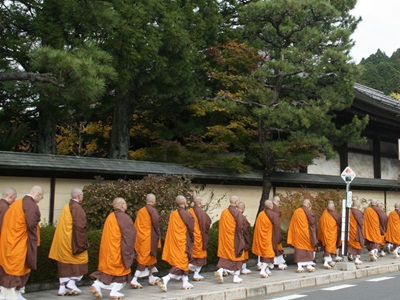 Een aantal keren overnachten we in ryokans (herbergen) of in minshuku’s (familiepensions) in traditioneel Japanse stijl. De tweepersoonskamers zijn hier spaarzaam ingericht. ’s Avonds spreiden we de futon (matras) uit op de vloer die bedekt is met tatamimatten. In de ochtend wordt de futon weer in de kast opgeborgen. Het ontbreken van douche/WC op de kamers van de minshuku’s wordt goed gemaakt door de onsen, het gemeenschappelijke bad, meestal gescheiden per sexe. Het is gebruikelijk om voor het diner een uitgebreid bad te nemen en gekleed in de verstrekte yukata (katoenen kimono) en haori (kort overjasje) aan het uitstekende diner te verschijnen.