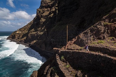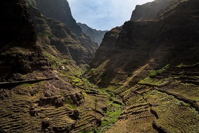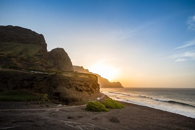 Dan verblijven we op Santo Antão 1 nacht in het gehuchtje Caibros in een klein pension. Vervolgens 2 nachten aan de kust bij Cha de Igreia in een sfeervolle en prachtig gelegen ecolodge in moderne chalets met uitzicht op zee. Deze lodge heeft een goed restaurant waar met lokale producten wordt gekookt. Duurzaamheid is een belangrijk uitgangspunt bij de bouw van deze lodge geweest. Het is de eerste ecologische lodge op de Kaapverdische eilanden waar duurzaamheid centraal staat: energie wordt geheel uit zonnecellen gehaald en water komt uit een lokale bron en zeewater wordt gefilterd in de eigen ontziltingsinstallatie. Er wordt vrijwel alleen gekookt met producten van het eiland en bijna alle personeel komt van het eiland. De chalets staan in het groen en er zijn overal tropische planten.