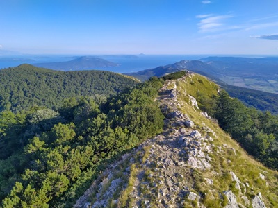 Een andere mogelijkheid is een afwisselende wandeling door het nabijgelegen Ucka gebergte, een natuurpark met schitterende uitzichten. Je komt op het hoogste punt van Istrië, de Vojak (1401m), van waar je bij goede weersomstandigheden Venetië en een aantal Sloveense regio 's kunt zien. Wandeling: 9 km, 470 m stijgen en dalen, 4 uur.