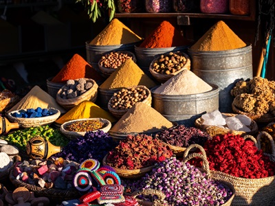 De Marokkaanse keuken is in het algemeen smakelijk, niet al te vet en zelden scherp. Het geheim zijn natuurlijk de kruiden, die de markthandelaren tot bonte piramiden opstapelen. Aardappelen, wortelen en tomaten worden verwerkt tot smakelijke soepen en eenpansgerechten. Het Marokkaanse gerecht bij uitstek is de tajine. De naam wordt zowel voor de typische kookpot met het spitse deksel als voor het daarin bereide gerecht gebruikt. Natuurlijk zullen we ook regelmatig van een heerlijke couscous genieten.