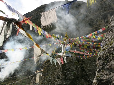 Nepal ligt ter hoogte van de Canarische Eilanden: het kan in de dalen dus behoorlijk warm worden. In het voor- en najaar is het in de Himalaya vrijwel altijd droog en de temperatuur loopt overdag op tot 20/25ºC, heerlijk wandelweer dus. Vanzelfsprekend neemt de temperatuur ’s avonds en op grotere hoogten af. ’s Nachts kan dan vorst tot -10ºC voorkomen. In november en december kan het kwik zelfs tot tot -20ºC dalen op grotere hoogtes! Soms komt mist voor: dan is het ook overdag aan de koude kant en blijft het kwik bij 10ºC steken. Je moet dus altijd op zomer en winter voorbereid zijn.
