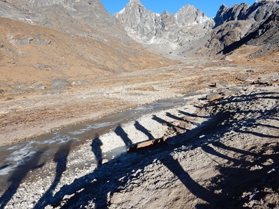 Af en toe steek je via een metalen hangbrug een rivier over. Deze hangbruggen zijn een beetje wiebelig, kunnen hoger dan 20 meter boven de rivier hangen, maar zijn van degelijke (Zwitserse) kwaliteit.