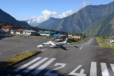 Vanaf Ramechap is het een vlucht van slechts 15 min. naar Lukla Na een adembenemende vlucht, met onderweg een prachtig uitzicht op de bergketens van Langtang en Jugal, kom je aan op de smalle landingsbaan in het op 2810 meter hoogte gelegen dorpje. Het is een spectaculaire ervaring!