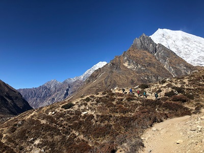 Vanaf Kyanjin Gompa (klooster) in de sterk Boeddhistische Langtangvallei is er een fenomenaal uitzicht op de hoogste berg van de regio, de Langtang Lirung (7245m). Aan de andere kant zie je de bergen van de Ganesh Himal liggen. Het is een trek van gemiddelde zwaarte waarbij het hoogste punt, de Laurebinapas, vlakbij de heilige meren van Gosaikund, 4610m bedraagt. De grootste hoogte waarop je overnacht is circa 4400m, een aanzienlijke hoogte, maar door de langzame acclimatisatie prima te doen.