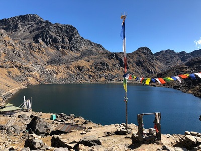 Het meer zelf is aan alle kanten omsloten door bergen en is in het gezelschap van negen andere meren. Het wordt gezegd dat de grote rots in het midden van het meer, de resten van een Lord Shiva altaar zijn. Volgens de legende is Gosaikunda gecreëerd door Shiva toen hij een gletsjer doorboorde met zijn drietand. Hij deed dat om zijn dorst te lessen nadat hij een vergif ingenomen had dat dreigde de wereld te vernietigen. Wandelduur: 6 uur, klimmen 1200m.