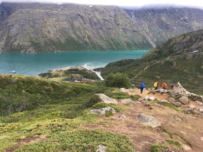 De te overbruggen hoogteverschillen wisselen sterk van een paar honderd meter tot een maximum van 1100 m stijgen en dalen. Het terrein is ruig en rotsachtig, wat betekent dat de paden veelal oneffen en stenig zijn, soms loop je alleen maar over grote rotsblokken. Goede tredzekerheid is noodzakelijk. Afhankelijk van het weer kom je meer of minder door moerassig terrein en kan de ondergrond drassig zijn. Toch adviseren wij geen fjell-laarzen, maar een stevige wandelschoen met een goed profiel. De weersomstandigheden op de fjell kunnen een verzwarende factor vormen. Ook met relatief weinig kilometers ben je in dit terrein lang onderweg.