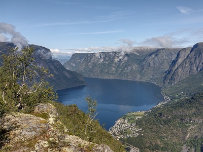 In Aurland hebben we gekozen voor een historisch hotel aan de fjord, met mooie tuin. We proberen een modern en ruim appartement direct aan het water te reserveren...je springt er zo in vanaf je balkon. Lukt dit niet dan boeken we een kamer in het historische pand, iets verder van de fjord.