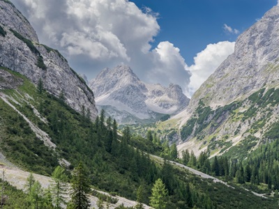 Na het ontbijt gaan we per bus naar Wildermieming. Daar maken we een rondwandeling naar de onder de ruige rotskam gelegen Alplhütte. Vanaf het plateau lopen we flink stijgend via de 'Ochsenbründlsteig' naar de fraaie houten hut, een heerlijke pauzeplek. De afdaling loopt via een prachtig beekdal door het 'Steinernes Meer', de imposante overblijfselen van een grote steenlawine. Via het Strassberghaus lopen we weer terug naar het plateau en Wildermieming.