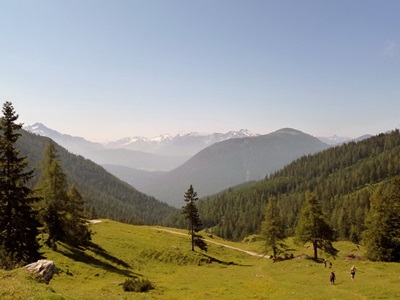 • Langs verschillende almhutten omhoog richting de top van de Rittisberg. Vanaf 1509m daal je geleidelijk af, eventueel langs het terras van de Ochsenalm, en kan je genieten van het mooie uitzicht: 16,5 km, 625 m stijgen en dalen, 6 uur. Deze tocht is in te korten tot 12 km, 400 m stijgen en dalen, 4 uur lopen.