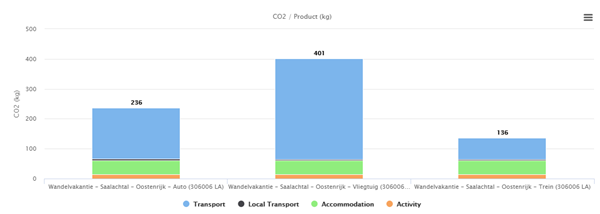 Op reis gaan betekent een onvermijdelijke CO2 voetafdruk. Ook deze reis naar Saalachtal ontkomt daar niet aan. Hoe groot is mijn voetafdruk? In onderstaand diagram kun je zien welke voetafdruk jij achterlaat met je reis. Je ziet ook het verschil wanneer je per trein, per vliegtuig of per eigen auto reist.