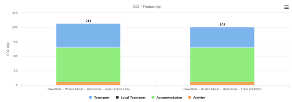 Op reis gaan betekent een onvermijdelijke CO2 voetafdruk. Zelfs deze reis naar Stubaital ontkomt daar niet aan. Hoe groot is mijn voetafdruk? In onderstaand diagram kun je zien welke voetafdruk jij achterlaat met je reis. Je ziet ook het verschil wanneer je per trein of per auto reist.