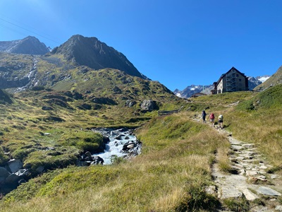 Je verblijft aan het begin en einde van je reis in een comfortabele accommodatie in het dal. Hoog in de bergen slaap je in berghutten. De Franz-Senn-Hütte is een charmante, traditionele berghut aan het einde van een rustig dal. De Neue Regensburger Hütte is volledig vernieuwd, waardoor het nu een mooie mix is tussen traditioneel en modern. In deze berghut staat duurzaamheid hoog in het vaandel.