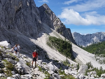 De eerste dagen wandelen we over karrensporen, bos- en bergpaden, soms verhard, soms stenig. Hoe dieper we de Julische Alpen in trekker, hoe steiler en ruiger de paden worden. Bij regen kan het glad zijn, en samen met de hoogteverschillen maakt dat deze tocht fysiek pittig. Een goede conditie, stevige bergschoenen en geen hoogtevrees zijn een must.